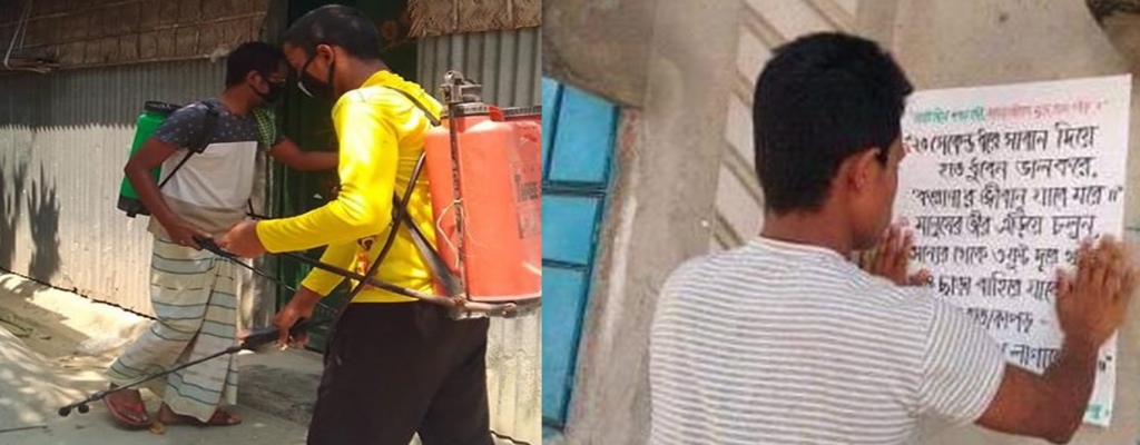 এছাড়াও রংপুরের গংগাচড়া উপজেলার নোহালী ইউনিয়নের পূর্বকচুয়া গ্রামে করোনাভাইরাস প্রতিরোধে সচেতনতা বৃদ্ধির লক্ষ্যে হাতে লেখা পোস্টার লাগান ইয়ূথ লিডার গোপাল চন্দ্র।