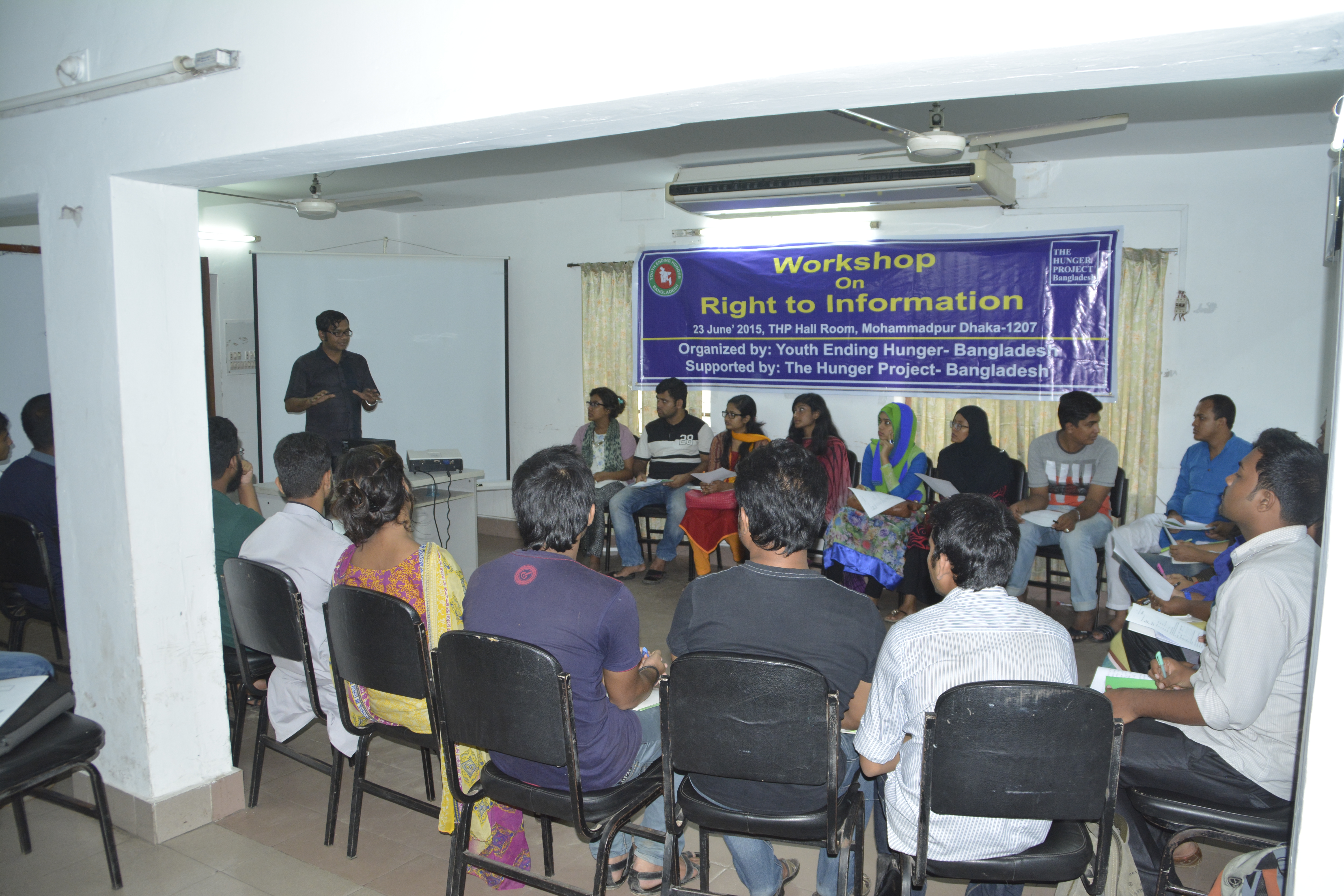 এই অবস্থার প্রেক্ষিতে ইয়ূথ লিডারদের বিকশিত করার লক্ষ্যে গত ২৩ জুন ২০১৫ ইং তারিখে ইয়ূথ এন্ডিং হাঙ্গার বাংলাদেশ ৩০ জন বলিষ্ঠ ইয়ূথ লিডারদের অংশগ্রহনে আয়োজন করেছিলো দিন ব্যপী Right to Information (RTI) কর্মশালা। কর্মশালাটি পরিচালনা করেন দি হাঙ্গার প্রজেক্ট বাংলাদেশ ট্রেনিং ইউনিটের চীফ ও প্রোগ্রাম ম্যানেজার জমিরুল ইসলাম এবং মাহমুদ হাসান রাসেল, প্রোগ্রাম অফিসার, দি হাঙ্গার প্রজেক্ট বাংলাদেশ।
